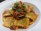 Classici agnolotti ai 3 arrosti conditi con un ragù battuto al coltello (perciò più grossolano)di carne di Fassone Piemontese,cipolla, pomodoro,aglio e profumi.